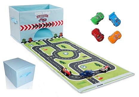 Zusammenklappbarer Spielzeugbehalter Mit Rennstrecke Und 4